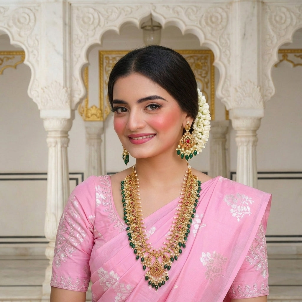 VAIDEHI REGAL KUNDAN RUBY & PEARL BEADED NECKLACE SET