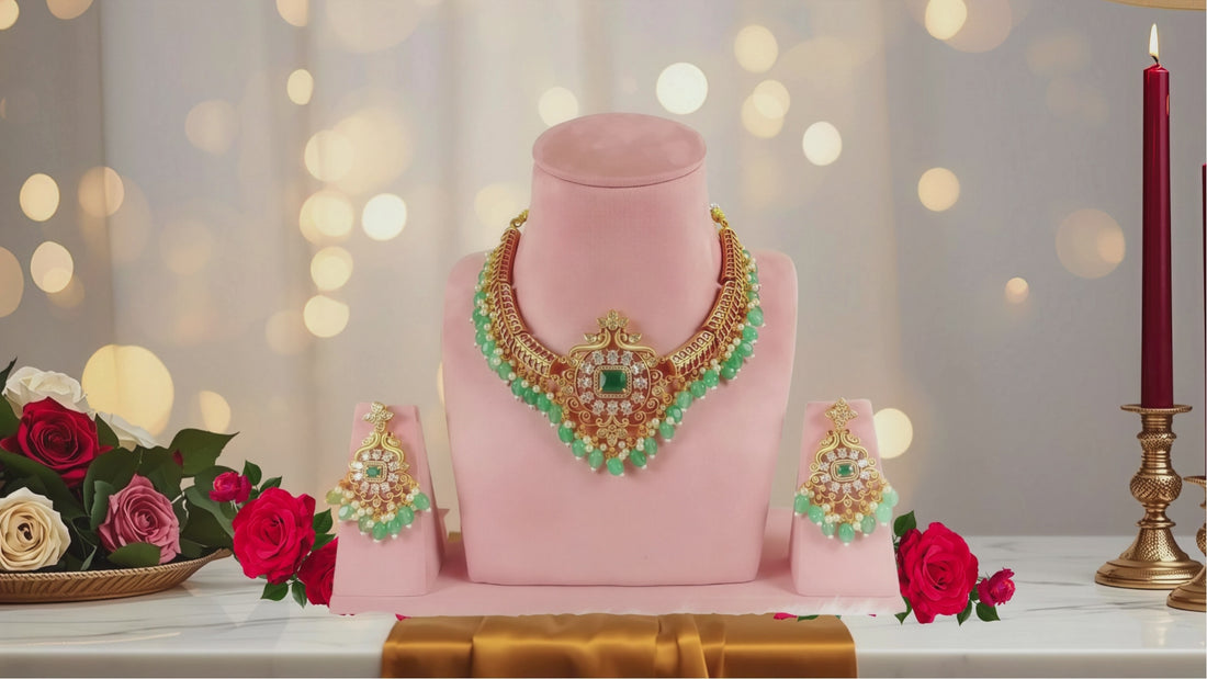 CLASSIC HERITAGE GREEN & RUBY STONE BEADED NECKLACE SET